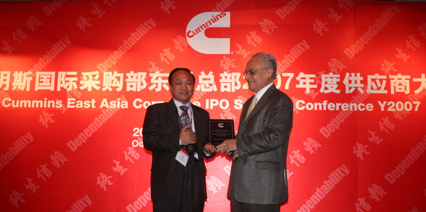 2014雷沃重工 質(zhì)量貢獻(xiàn)獎(jiǎng) 領(lǐng)獎(jiǎng)?wù)掌?span id="__kindeditor_bookmark_end_19__"> 卡特彼勒配套生產(chǎn)線頒獎(jiǎng)合影 玉柴動(dòng)力頒獎(jiǎng) 2007年10月,美國(guó)康明斯公司頒發(fā)優(yōu)秀供應(yīng)商獎(jiǎng)現(xiàn)場(chǎng)